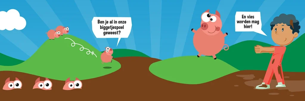 In de biggetjespoel leven de kleintjes zich helemaal uit in de zandbak met trekkers, shovels en kranen.